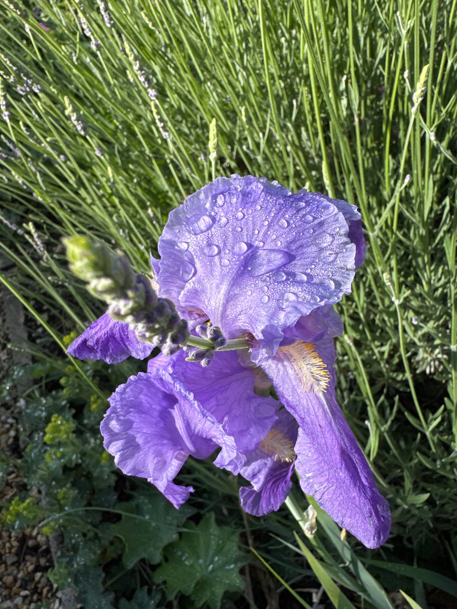 This garden, these plants, this moment are like a draft of good medicine. Something to inhale and store cell deep. I am changed by it, in ways too subtle to describe here in words. The smell is so green. I think the rain has released scents from every blade, stem and leaf, it pours into our garden room, filling it and my nostrils. Roses, Peonies, Iris and Lavender are drenched with water and sparkle.