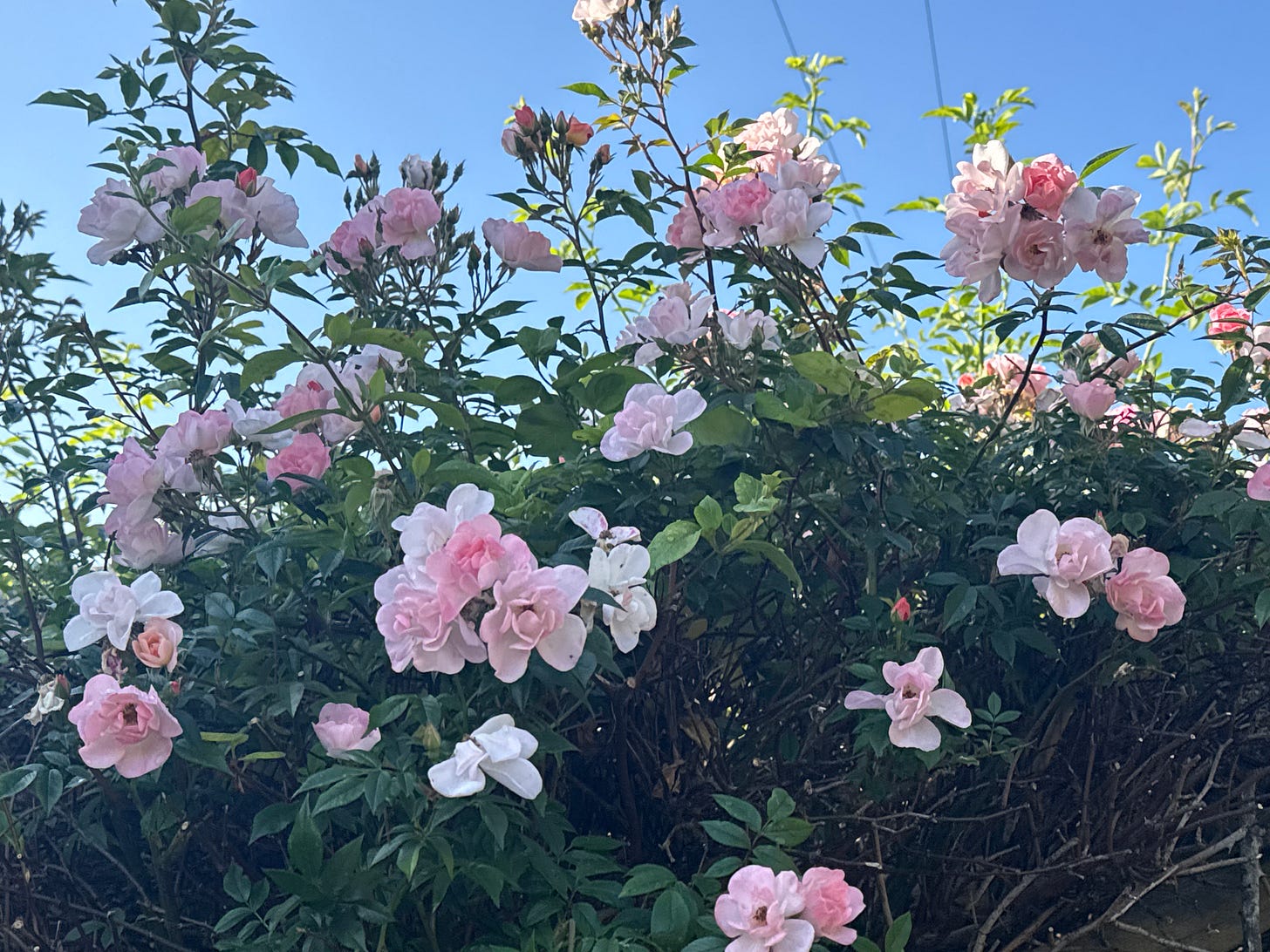The garden feels like a complete prayer, a silent, grace-filled alleluia that opens itself wide to take me into the folds of itself, like I’m one of its own, an equal part. A beloved. The ‘hug’ is generous and without boundary or condition. This is where God is… where presence and Presence come together. Where love rises out of the soil through root and stem declaring itself to be love. Tiny birds flutter across from one fence to another, barely bigger than my pinkie, they are the small punctuation marks of this love story.