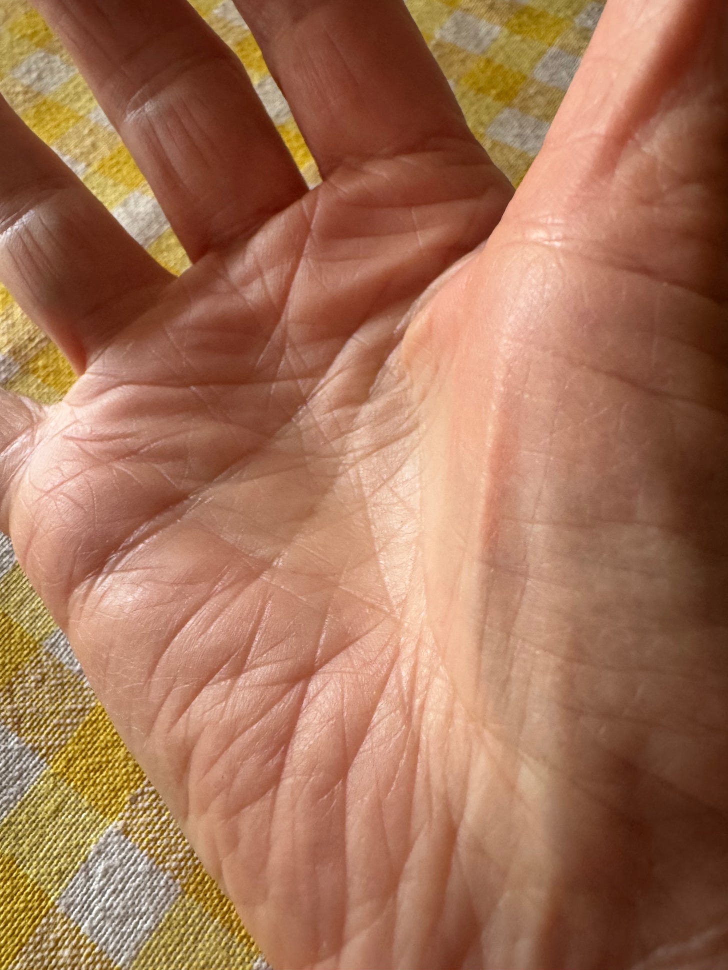 I thought of the buttons they’d fastened, laces tied, zips pulled. Of chopping, slicing, stirring. I remembered tiny hands held as I walked a child to school on their first day. A cheek stroked or a back rubbed, massaging the tired shoulders of our teenagers. Resting a hand upon the arm of a grieving friend. These hands have made countless cups of tea, held myriad glasses in celebration, dabbed on antiseptic and ripped off plasters. Applied lipstick, eyeshadow, perfume. Hung from branches and pulled my body up rocks. Brushed hair and wiped bottoms. They move when I speak, their own language to underpin the spoken word. There is a dynamic energy in them. I am grateful.